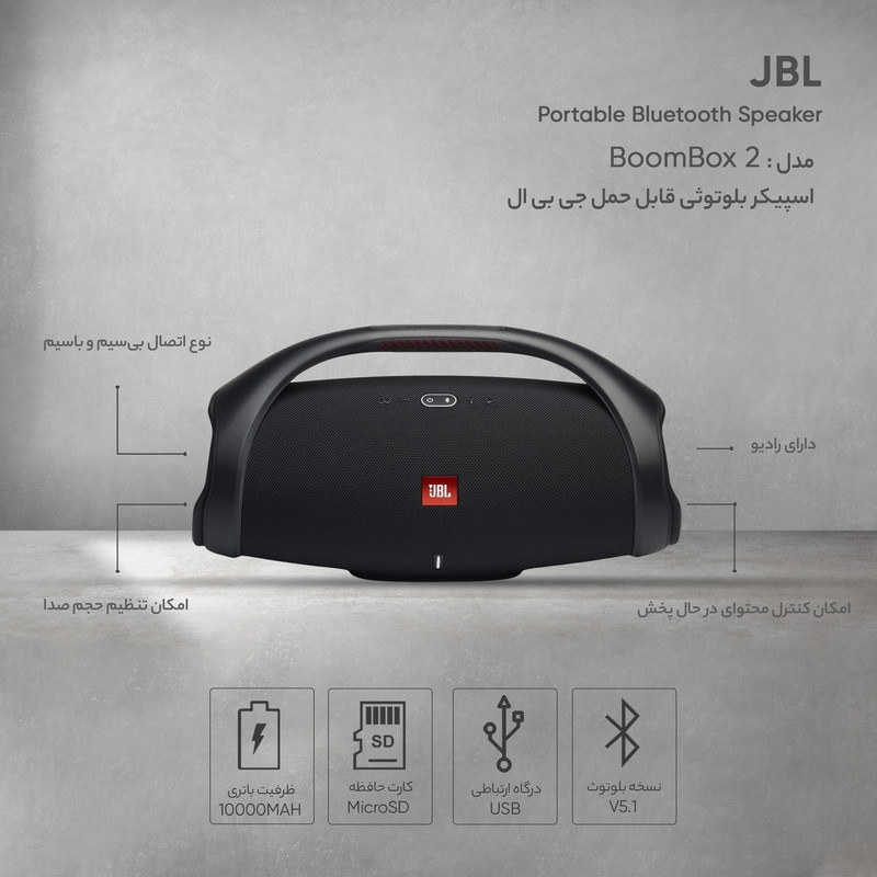 اسپیکر بلوتوثی قابل حمل جی بی ال مدل BoomBox 2
