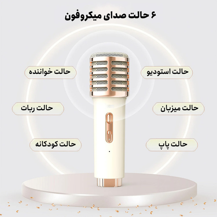 اسپیکر قابل حمل کارائوکه Divoom Songbird-HQ یکی از جدیدترین و جذابترین محصولات در حوزه موسیقی و تفریحات صوتی است. این اسپیکر با طراحی منحصربهفرد و رنگ سبز زیبا، توجه هر کسی را به خود جلب میکند. وزن سبک و ابعاد کوچک آن، حمل و نقل را آسان کرده و میتوانید آن را به مهمانیها، سفرها و دورهمیهای دوستانه ببرید. بدنه مقاوم و باکیفیت آن از مواد درجه یک ساخته شده و در برابر ضربه و خراش مقاوم است. طراحی ارگونومیک دستگاه استفاده از آن را راحتتر کرده و انرژی مثبت را به فضا میآورد. این اسپیکر دارای دو میکروفون بیسیم با کیفیت بالا است که امکان آوازخوانی دو نفره را فراهم میکند. میکروفونها با برد مناسب و کیفیت صدای عالی، تجربه کارائوکه را لذتبخشتر میکنند. اتصال بلوتوث پیشرفته، ارتباط پایدار و سریعی را با دستگاههای مختلف مانند تلفن همراه، تبلت یا لپتاپ فراهم میکند؛ بنابراین میتوانید موسیقی دلخواه خود را به سادگی پخش کنید. باتری داخلی قابل شارژ با ظرفیت بالا به شما اجازه میدهد تا ساعتها بدون نگرانی از تمام شدن شارژ، از موسیقی و کارائوکه لذت ببرید. کنترلهای کاربرپسند دستگاه، شامل دکمههای تنظیم صدا، پخش و توقف موسیقی و تنظیمات میکروفون، استفاده از آن را آسان ساخته است. این اسپیکر با درایورهای صوتی با کیفیت، صدایی شفاف و قدرتمند تولید میکند. بیس عمیق و توان خروجی مناسب، شنیدن موسیقی با جزئیات دقیق را ممکن میسازد. میکروفونهای بیسیم نیز با فناوری کاهش نویز، صدای شما را به بهترین شکل منتقل میکنند. Divoom Songbird-HQ انتخابی عالی برای مهمانیها و دورهمیها است؛ میتوانید با دوستان خود مسابقه آواز داشته باشید و فضایی شاد و پرانرژی ایجاد کنید. همچنین، با طراحی زیبا و امکانات متنوع، میتواند هدیهای جذاب برای عزیزانتان باشد. استفاده آسان و راهاندازی سریع، بدون نیاز به تنظیمات پیچیده، از دیگر مزایای این محصول است.