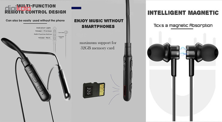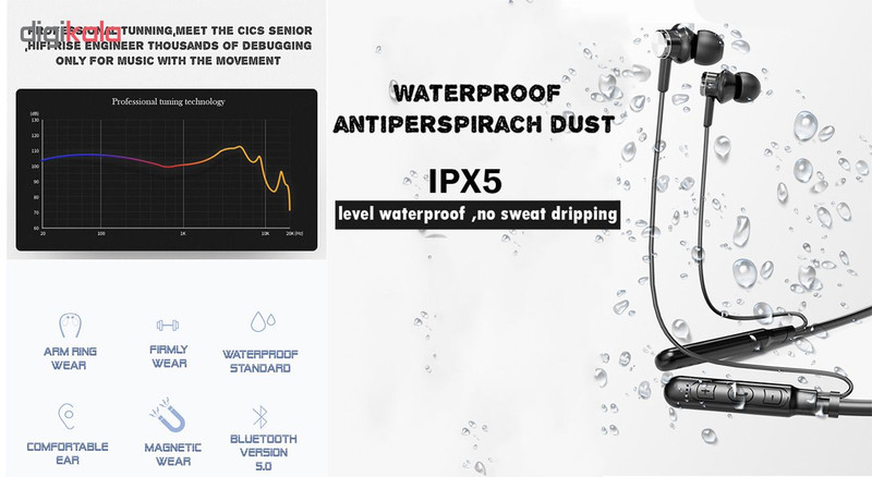 دارای تاییدیه IPX5 گوش دادن به موسیقی بین 12-15 ساعت سرگوشی با سایز های مختلف دارای قفل اهنربایی بدنه ضد تعریق