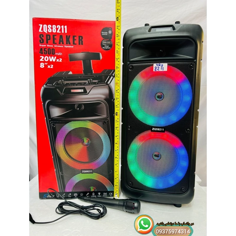 ✅اسپیکر ZQS ✅مدل 8211 ✅سایز ساب: 2*8 اینچ ✅میکروفون: سیم دار ✅ورودی شارژر: تایپ سی ✅قابلیت جفت سازی TWS ✅وات واقعی: 60 w ✅ظرفیت باتری: 4500 میلی امپر ✅نوع کاربری: جشن تولد.دورهمی،مناسبتی ✅رادیو: دارد ✅درگاهای ارتباطی: ورودی فلش/کارت حافظهSD بلوتوث/جک ورودی AUX ✅ریموت کنترل ✅بلوتوث: دارد ✅رقص نور ✅تنظیمات صدا ✅فضای پوشش دهی: 120 الی 150 متر ✅ارتفاع : 65 سانتی متر